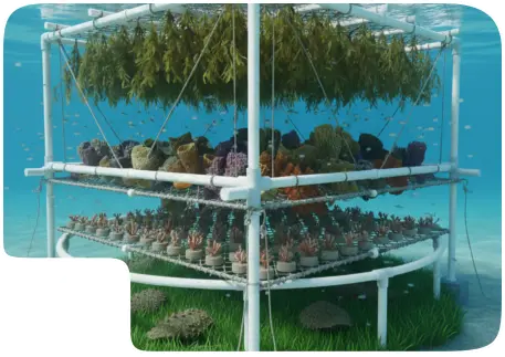An integrated approach combining marine ecosystem restoration with sustainable aquaculture to support ecological balance and productivity.