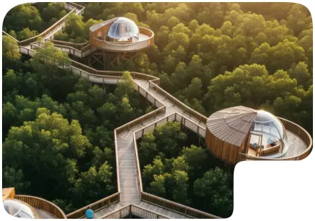 Here, architecture steps back and nature leads. Elevated walkways weave through ancient roots, while your space moves in harmony with the rhythm of the tides. This is a quiet immersion—designed to reveal the hidden life of a vital coastal ecosystem without leaving a footprint.
