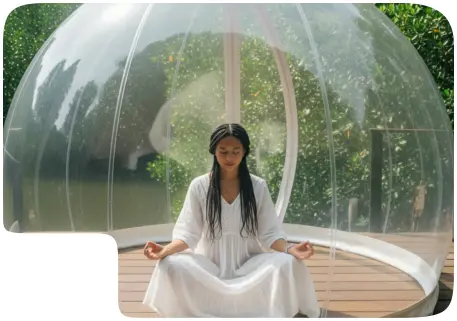 Wake up inside a transparent sanctuary, suspended gently within the canopy of a thriving mangrove forest.